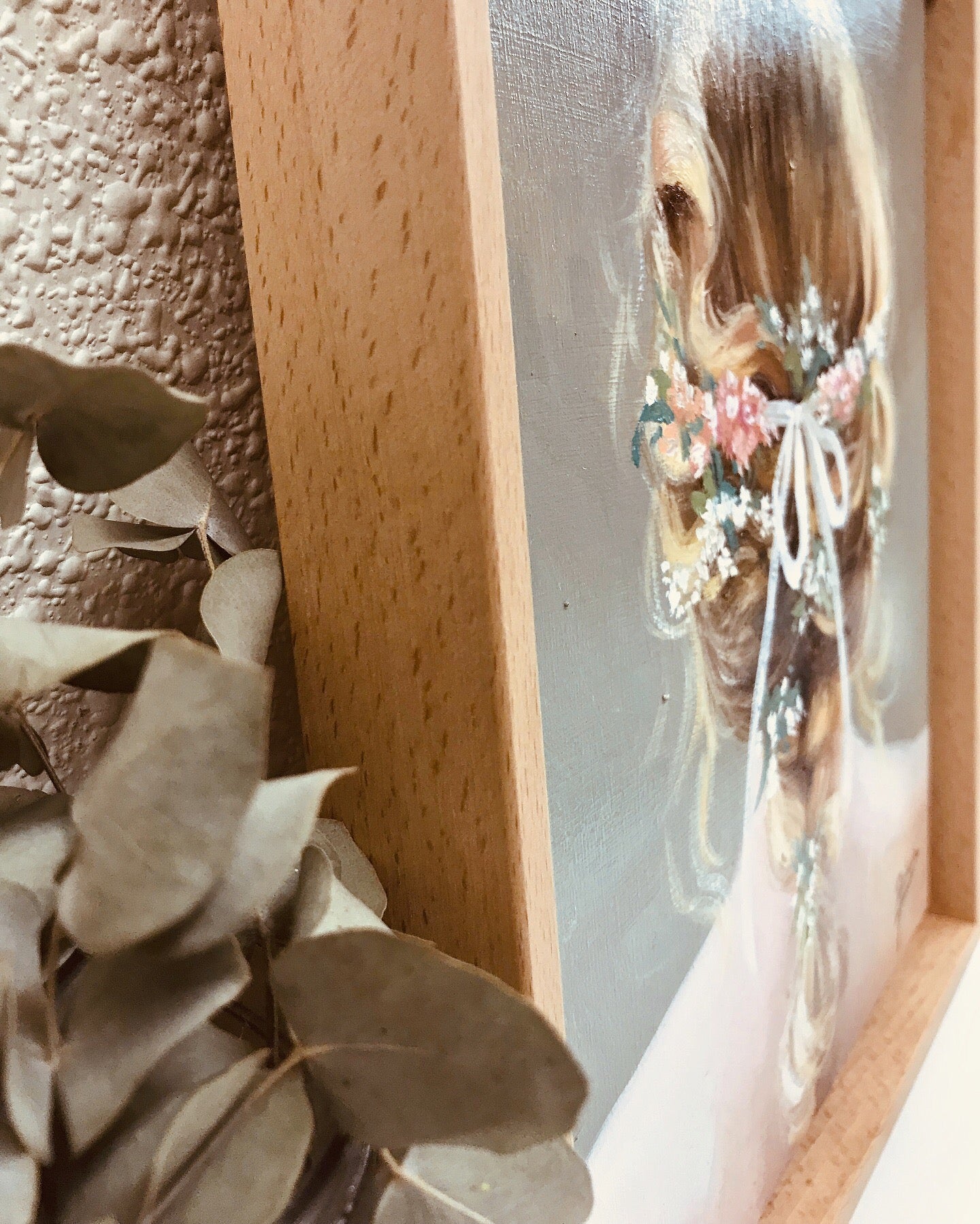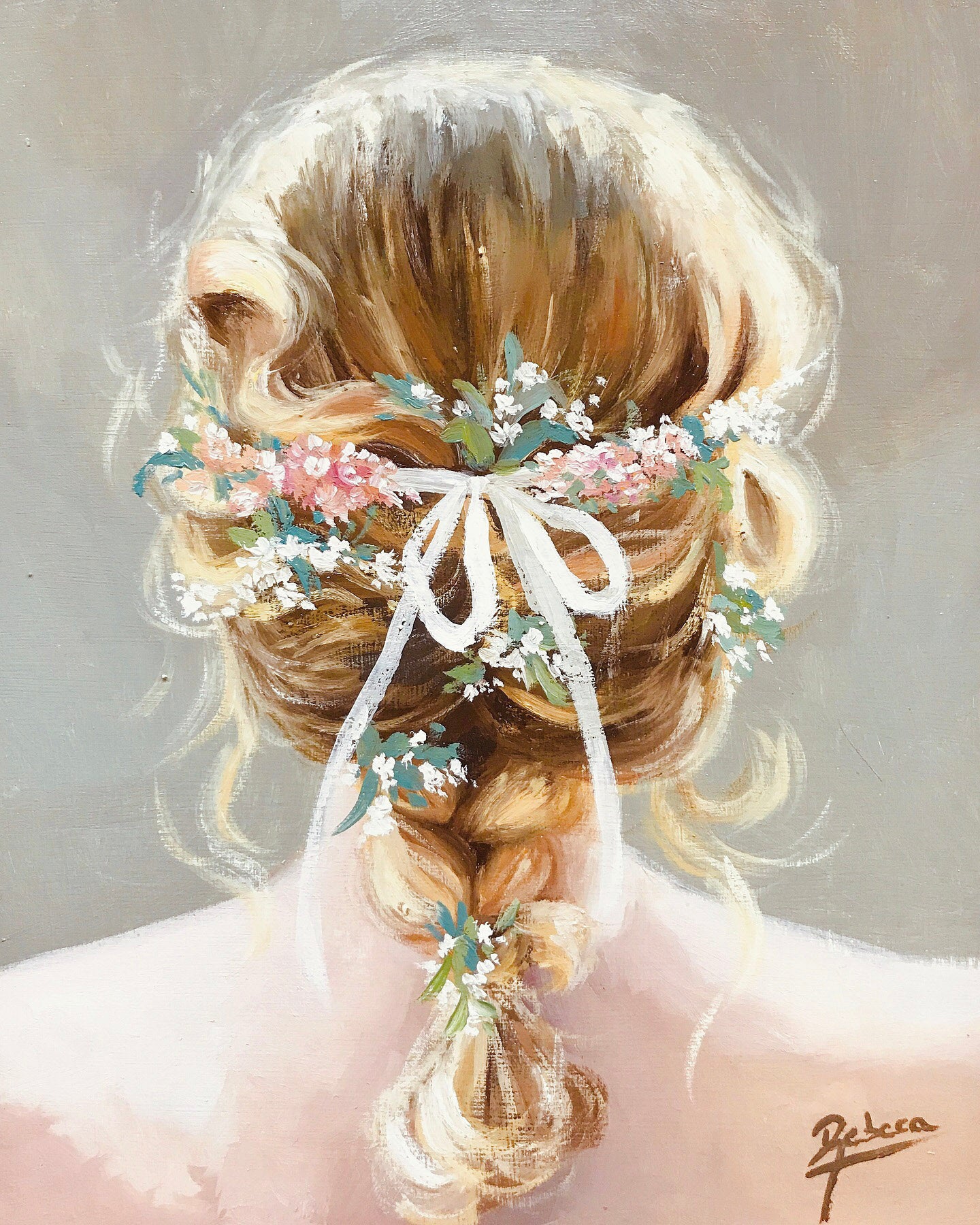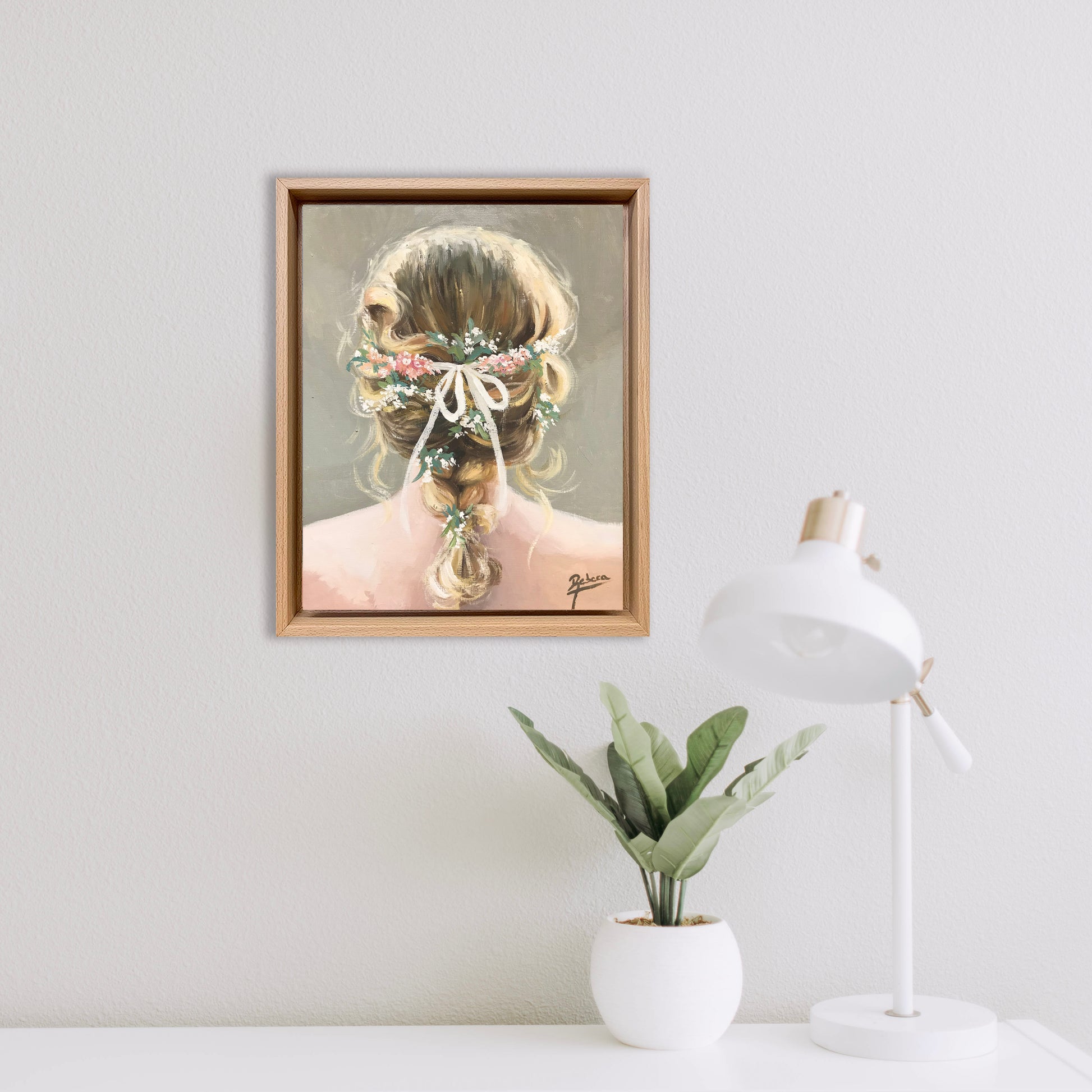 Esta obra original en óleo sobre tabla, con unas medidas de 27 x 22 cm, muestra la delicada figura de una mujer de espaldas. Su peinado trenzado, adornado con flores y un lazo, transmite un aire romántico y desenfadado que aporta frescura y calidez. El fondo, compuesto por tonos neutros en grises y verdes, crea una atmósfera serena que armoniza con la figura principal, una opción perfecta para dar un toque de romanticismo a cualquier espacio. Su tamaño compacto permite ubicarla fácilmente en estanterías, columnas o sobre muebles como aparadores o cómodas, adaptándose bien a diferentes ambientes y estilos decorativos. Esta obra es especialmente recomendable para quienes aprecian la pintura impresionista con un enfoque figurativo y desean incorporar una pieza que evoque sensibilidad y elegancia en su hogar.