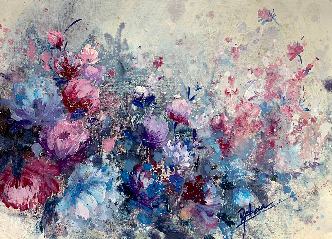 F212 destaca por su temática en tonos azul, morado y rosa. Su tamaño mini es perfecto para enriquecer cualquier rincón de tu hogar u oficina. Cada pincelada cuidadosamente elaborada da vida a las delicadas flores que aparecen en la obra, creando un ambiente de tranquilidad y armonía.