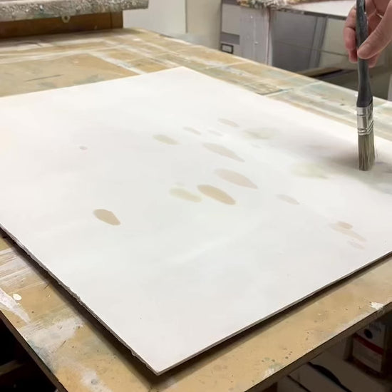 Tabla preparada con imprimación acrílica para servir de base a la pintura.