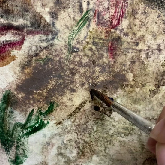 Obra creada con materiales de alta calidad: tablas preparadas en empresas líderes en artículos de bellas artes, así como los óleos, acrílicos y barnices usados son de marcas de excelencia en el sector.