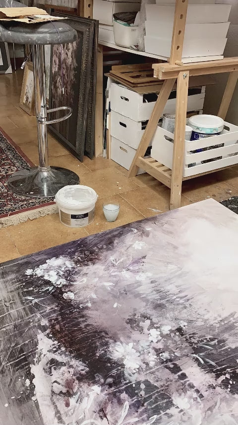 F236, es una pieza única por su composición, con solo el uso del negro, morado, tonos nude y el blanco, crea un ambiente totalmente moderno y original, donde la flor y la hoja solo se componen en blanco sobre una macha abstracta. Su tamaño es ideal para ser el centro de atención de la estancia, su combinación de color, le dará fuerza y carácter, así como exclusividad y personalidad.