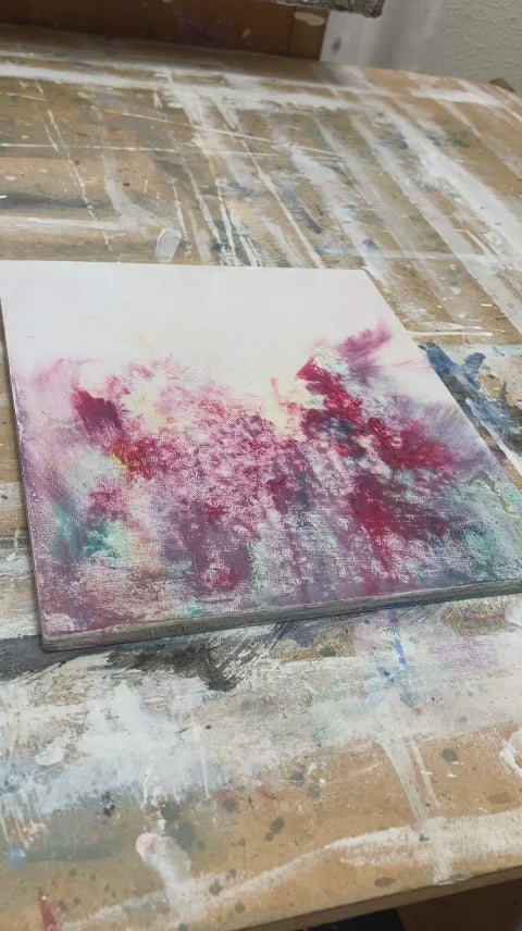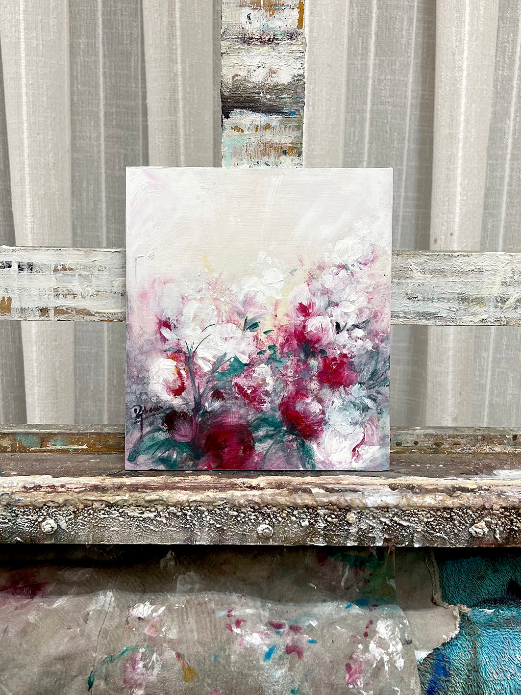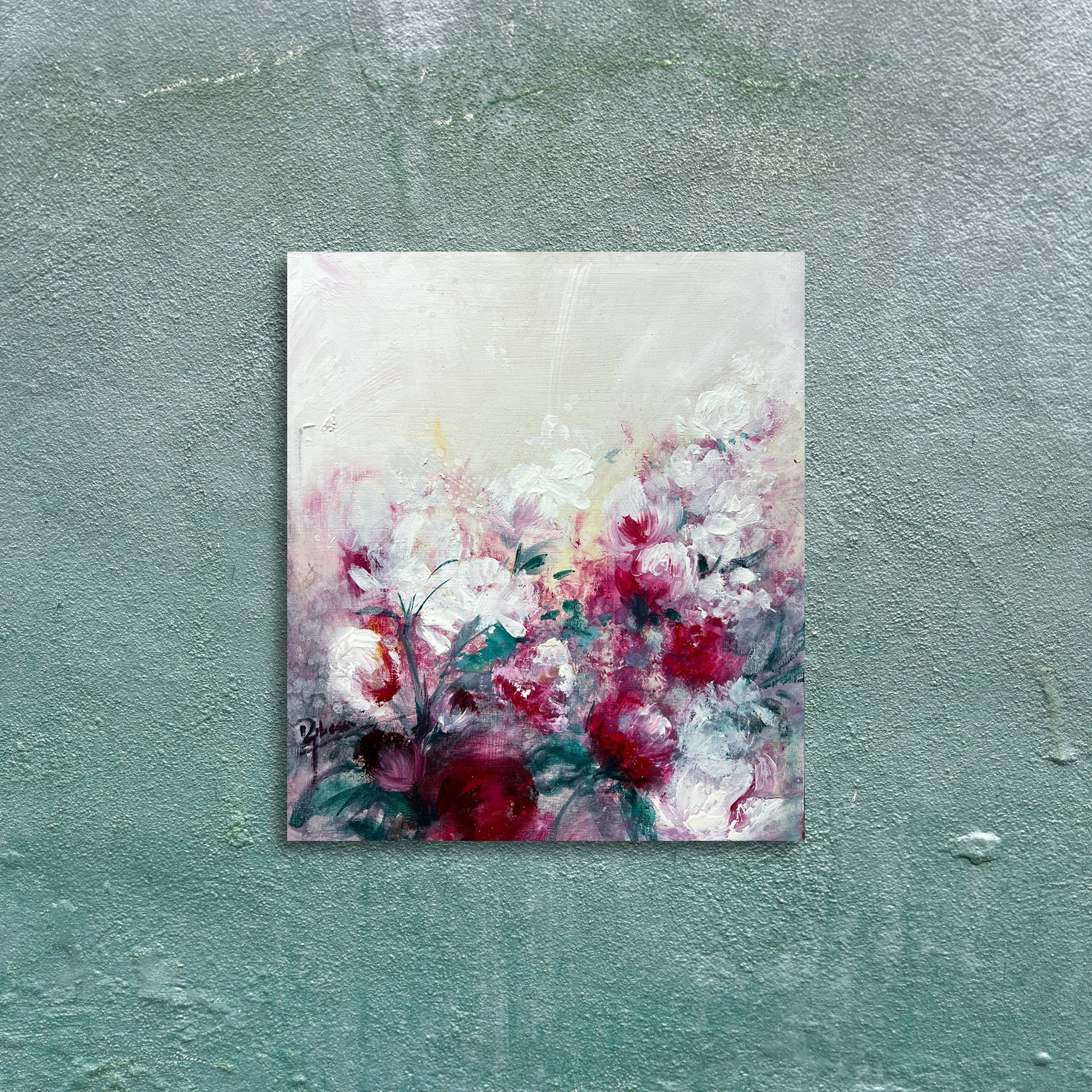 F238, es la representación de una rosaleda en miniatura, con flores en blanco y rosa, resaltadas por el verde de la hojarasca y con un halo de sol como fondo. Da un toque primaveral y romántico con esta pieza, en tamaño mini. Ideal para cualquier estancia. Se puede colgar o apoyar en vitrinas, mesas, escritorios o estanterías. Si se va a colgar, recomiendo que sea en espacios delimitados, por ejemplo, columnas, o paredes estrechas, o junto a algunas obras, creando un grupo.