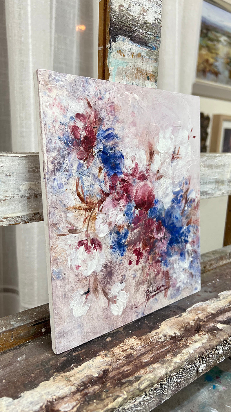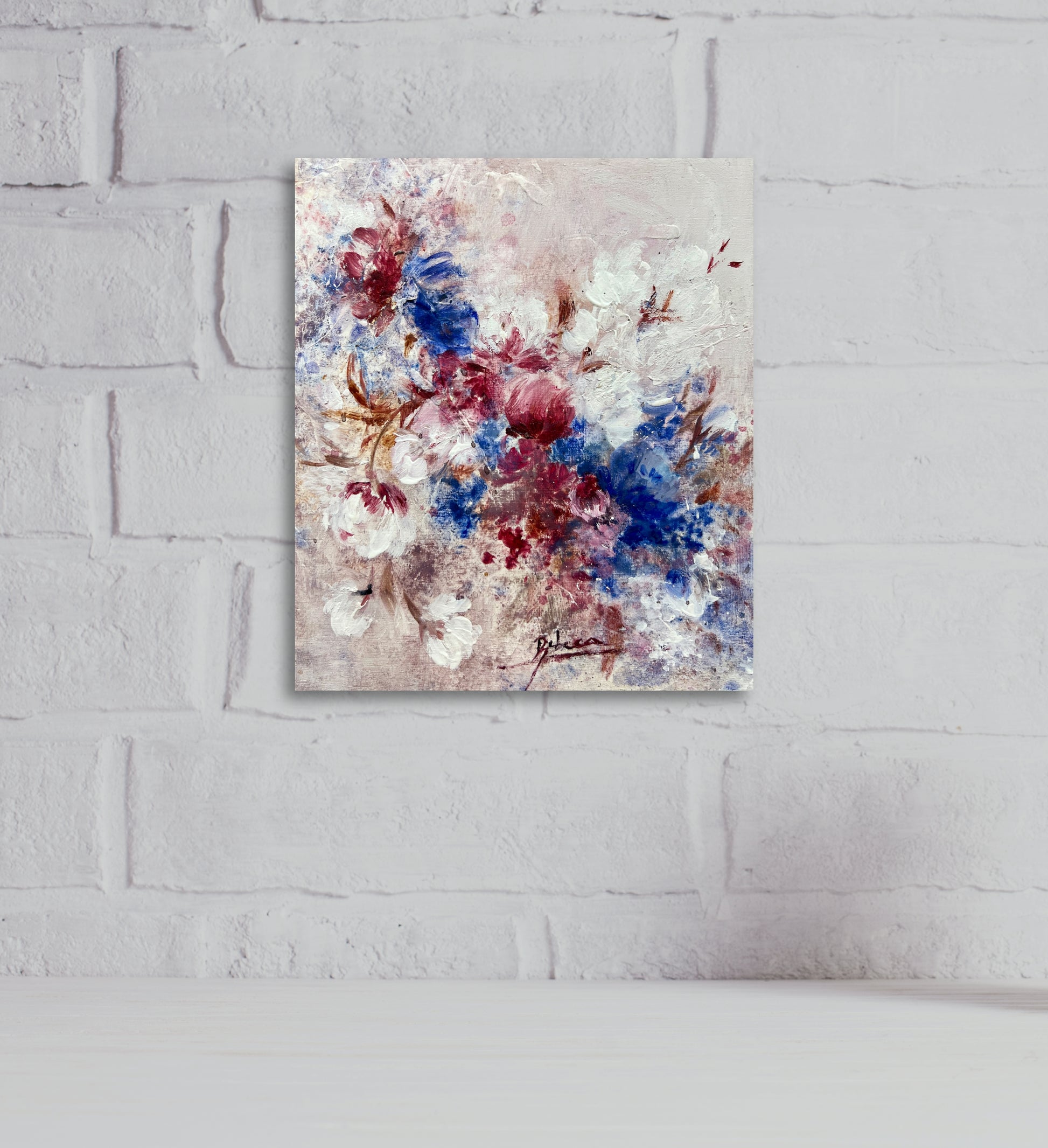 F239, es un bouquet de flores minis en tonos rosa, blanco y azul. Da un toque primaveral y jovial con esta pieza, en tamaño mini. Ideal para cualquier estancia. Se puede colgar o apoyar en vitrinas, mesas, escritorios o estanterías. Si se va a colgar, recomiendo que sea en espacios delimitados, por ejemplo, columnas, o paredes estrechas, o junto a algunas obras, creando un grupo. Ideal también para regalo, quién busca algo especial, fuera de lo común, para amantes de la flor, lo romántico, la decoración o la colección.