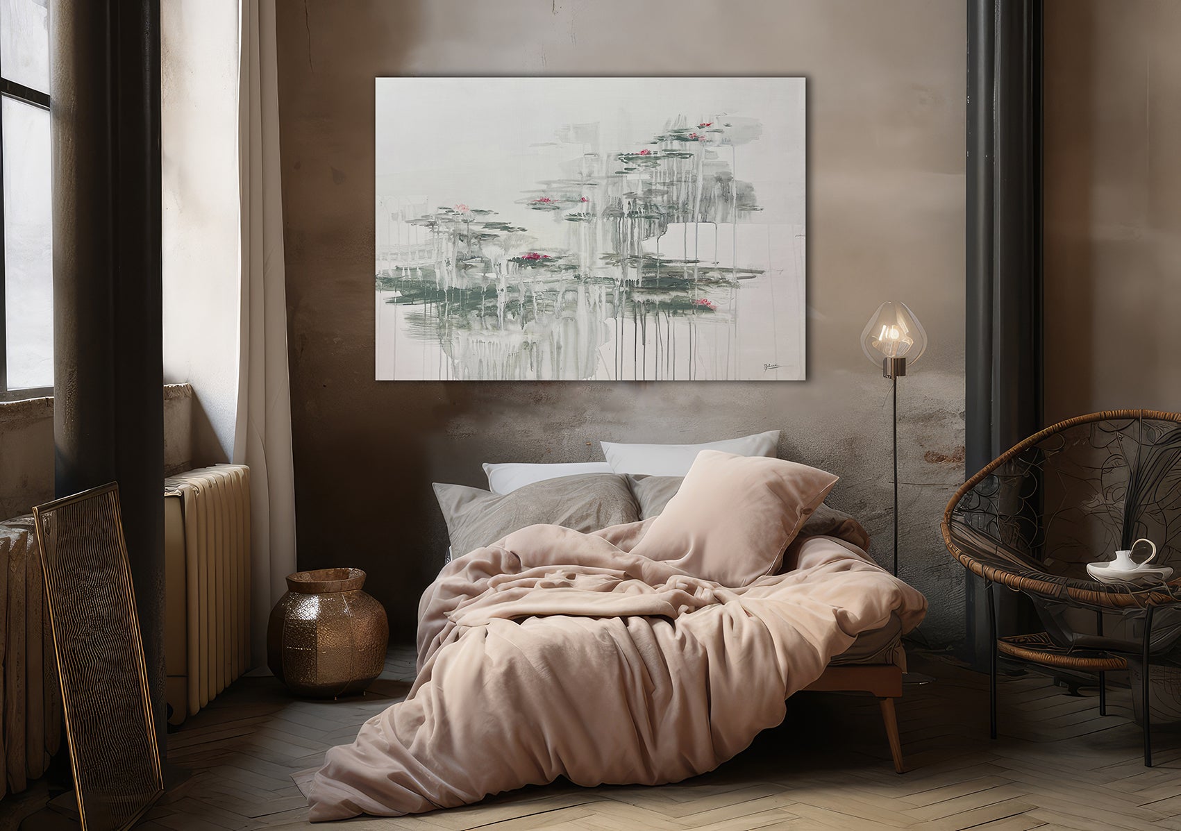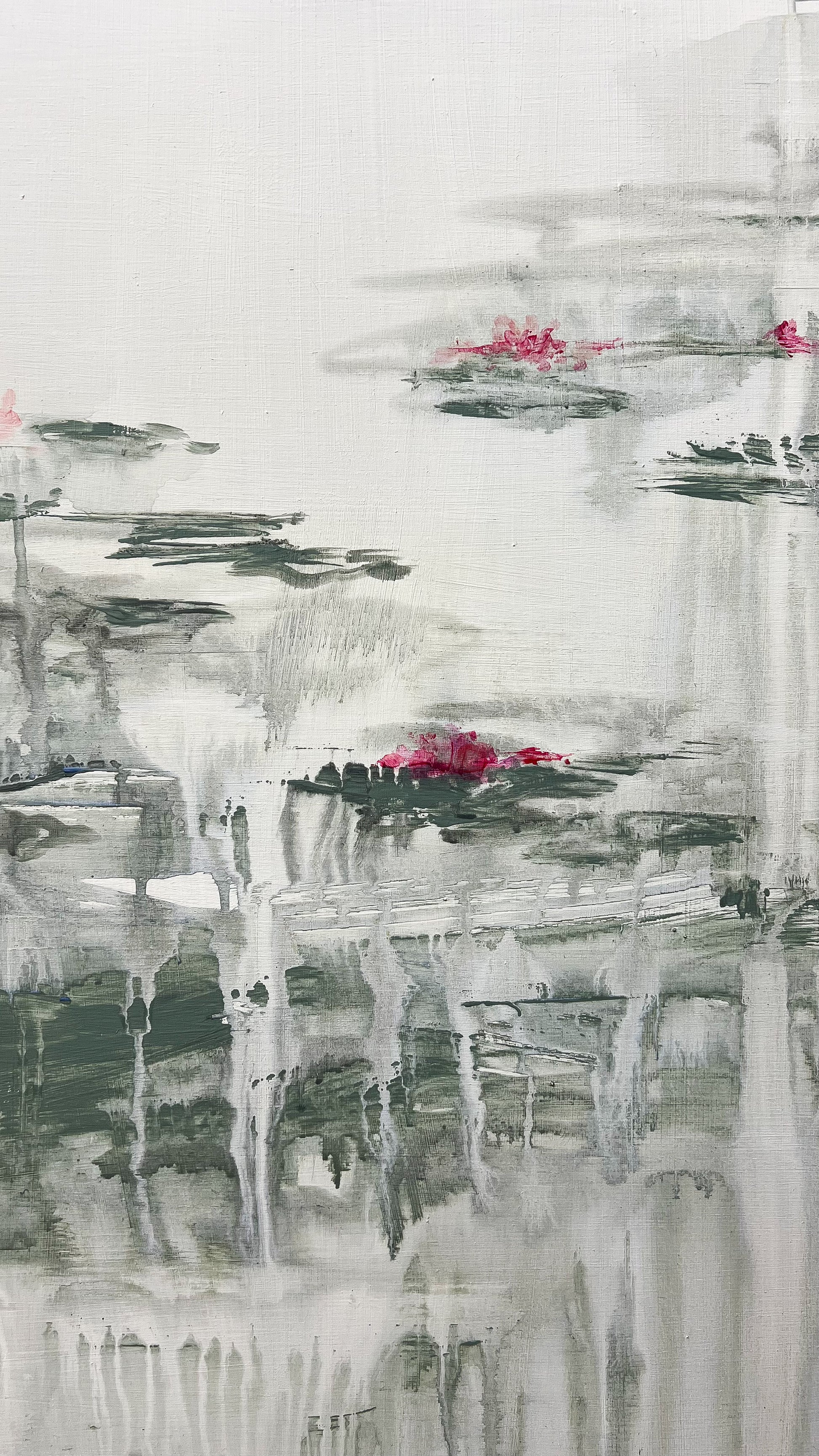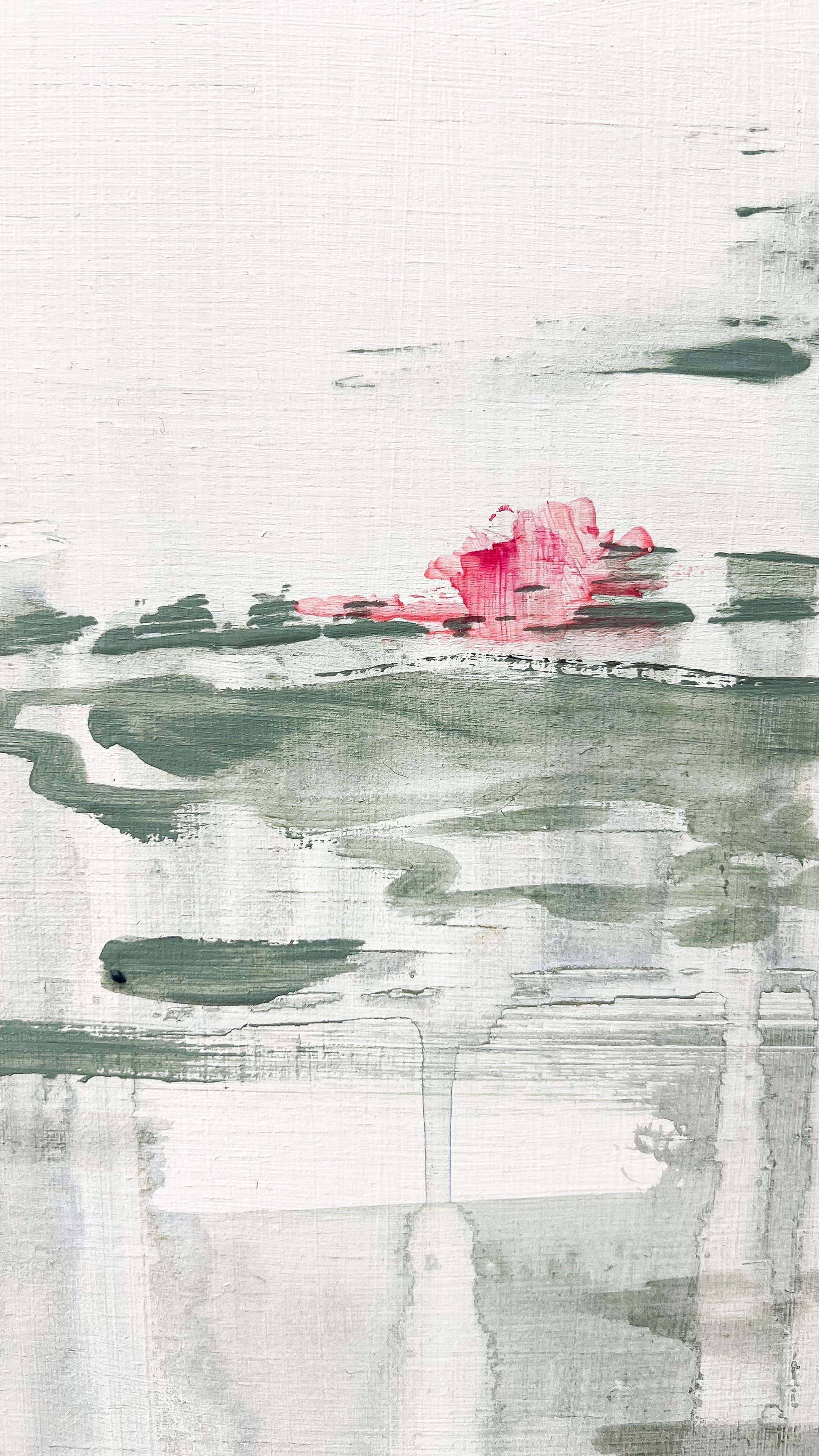 F257, es una de mis obras más abstractas. Donde justamente menos es más. Una obra donde solo unos pocos trazos han creado lago con nenúfares suspendidos, con efecto totalmente abstracto y minimalista. Si eres fan de lo poco recargado y de la belleza de lo sutil, este es tuyo.