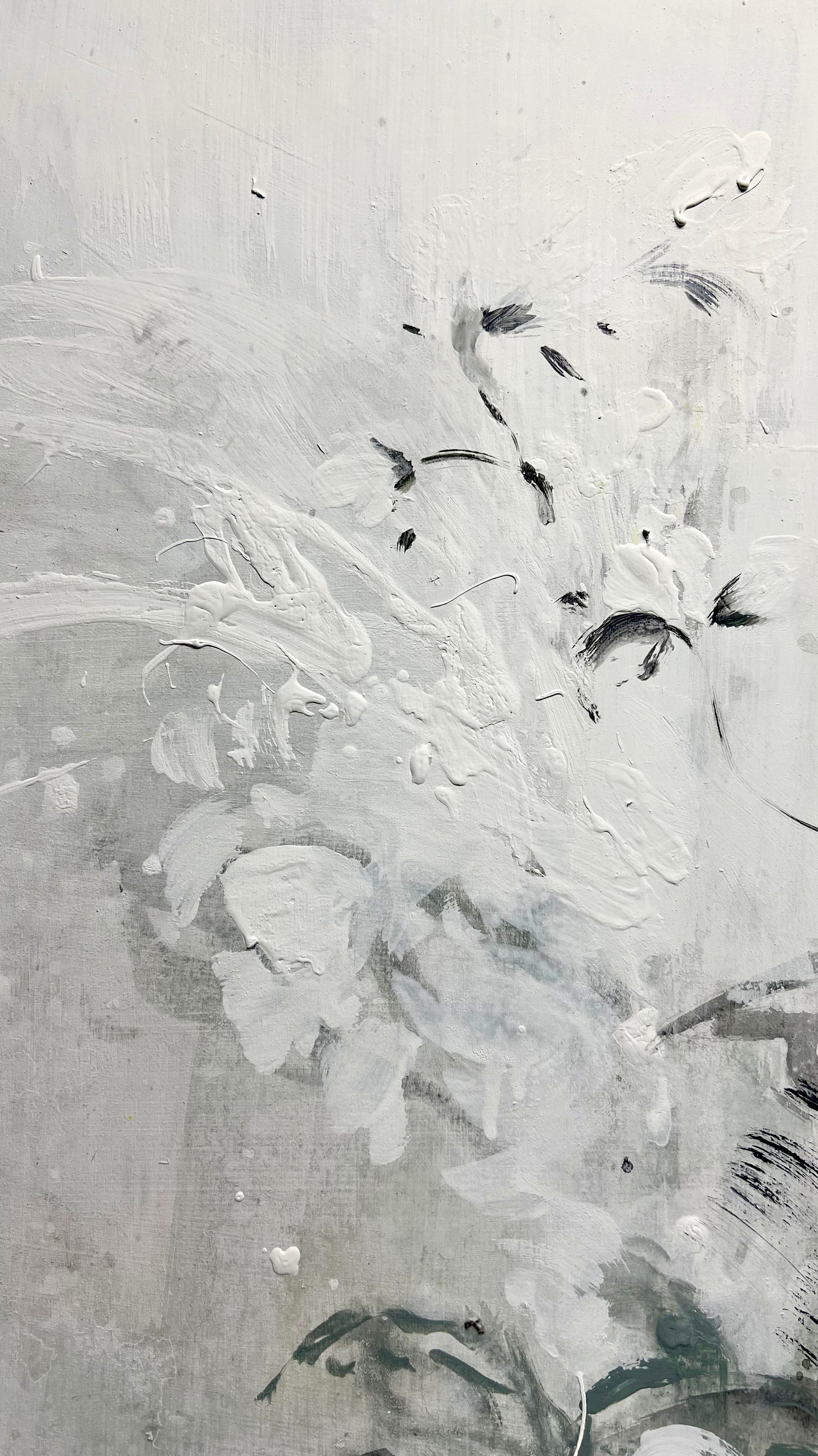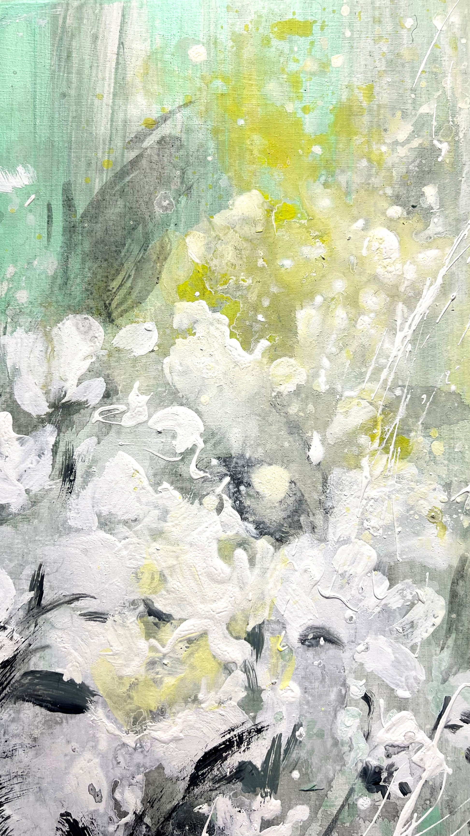 F260, es sin duda una de mis piezas más rompedoras, evitando todos los colores clásicos, se compone a base de manchas negras y blancas y añade toques cítricos en color verde y amarillo. Las hojas se representan negras y la flor en blanco puro, creando un contraste directo. El verde y amarillo es lo único que se salga dela desautorización. Evocando a esa parte real de la naturaleza, el sol, y la vegetación. Es sin duda una obra nueva en pensamiento y en sentimiento, expresión y fuerza.