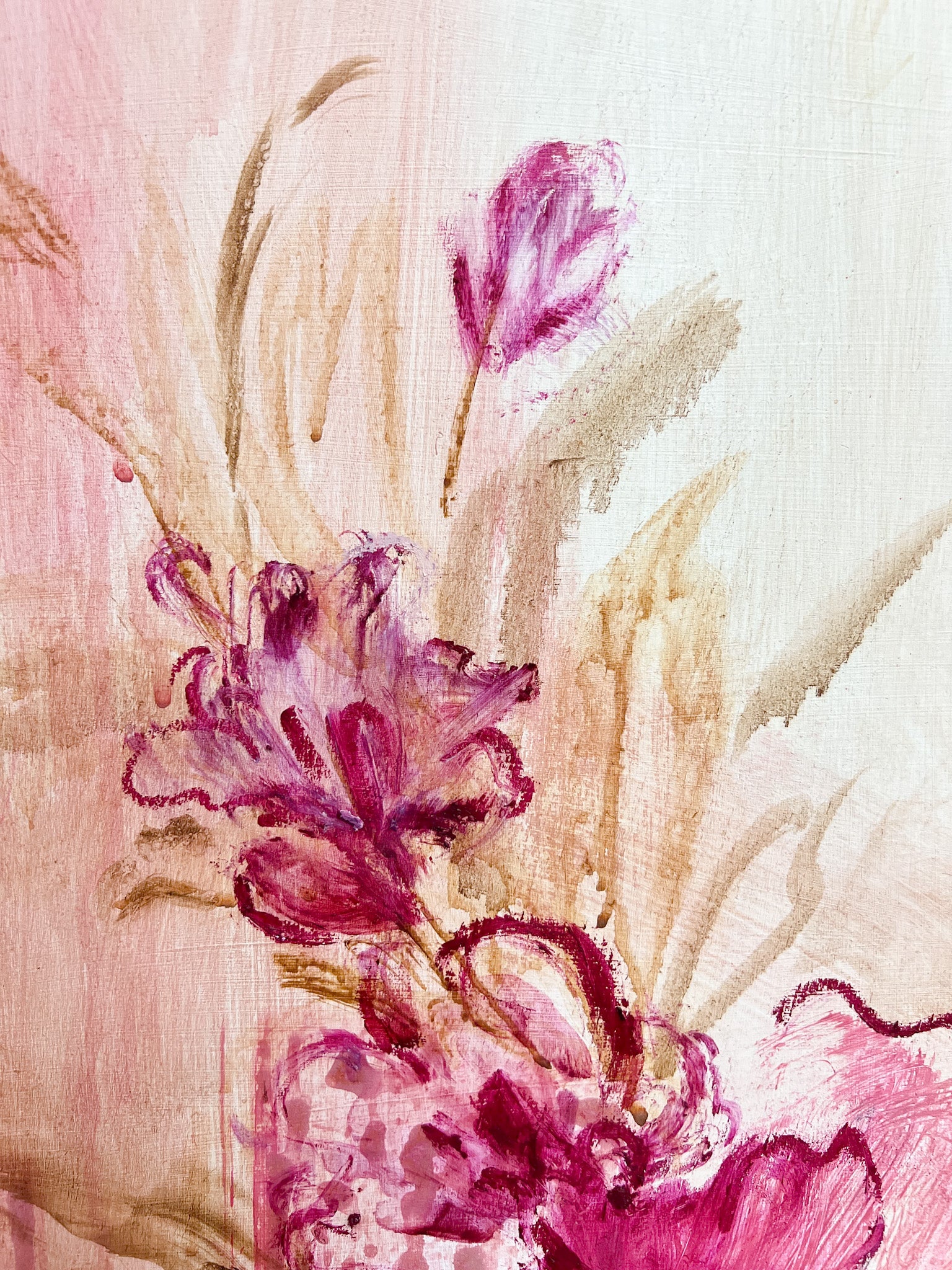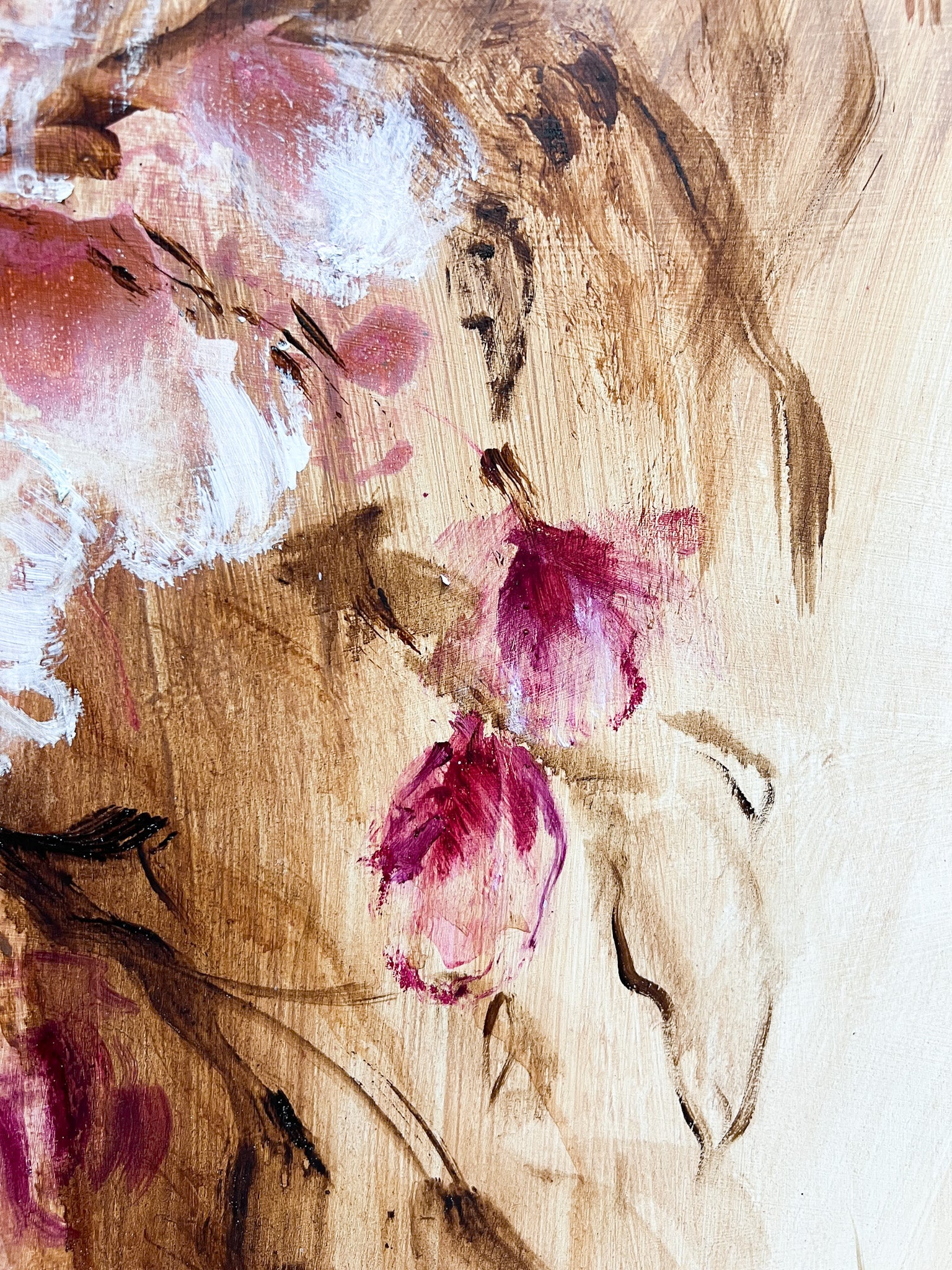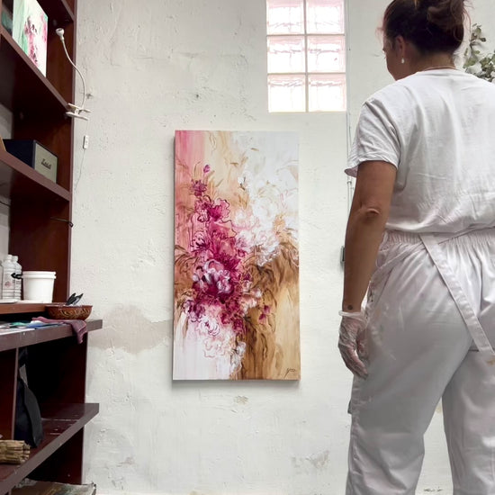 F274 es una obra en técnica mixta sobre tabla de 120x60 cm que destaca por su formato vertical y su equilibrio entre fuerza y elegancia. Con una paleta de tonos marrones, rosas y blancos, esta pieza representa una escena floral cuidadosamente elaborada que aporta sofisticación y vitalidad a cualquier ambiente. Su diseño y dimensiones la hacen perfecta para realzar paredes de pasillos, espacios entre columnas o acompañar mobiliario, brindando un toque de carácter, determinación y estilo que transforma el entorno con delicadeza y presencia.