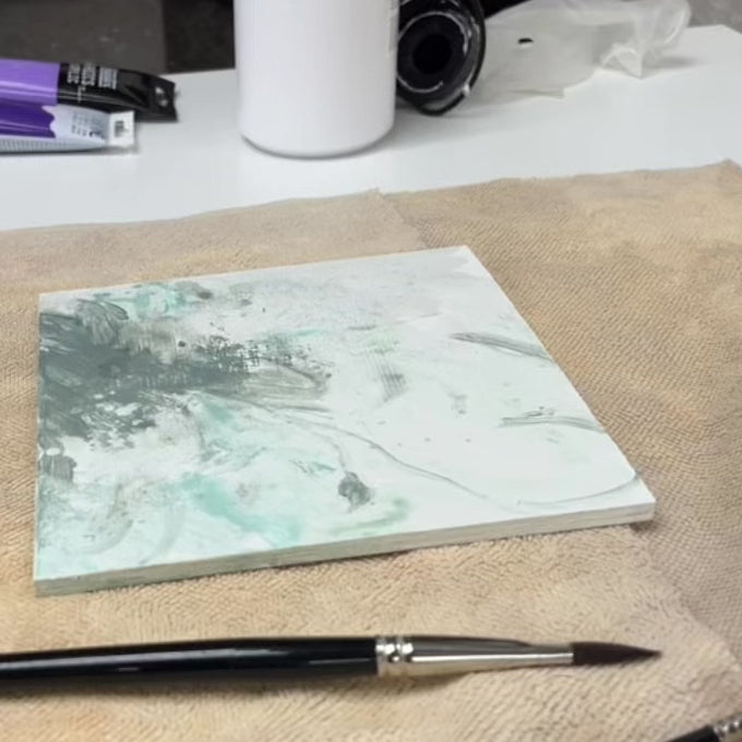 Tabla preparada con imprimación acrílica para servir de base a la pintura.