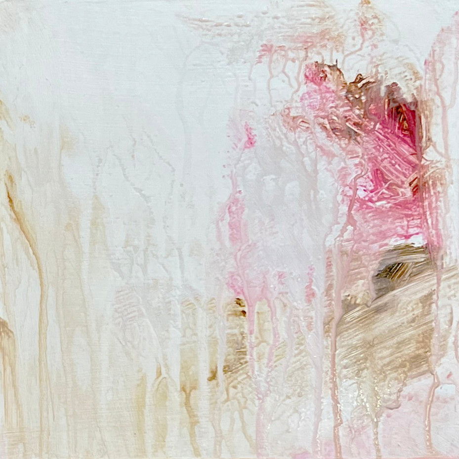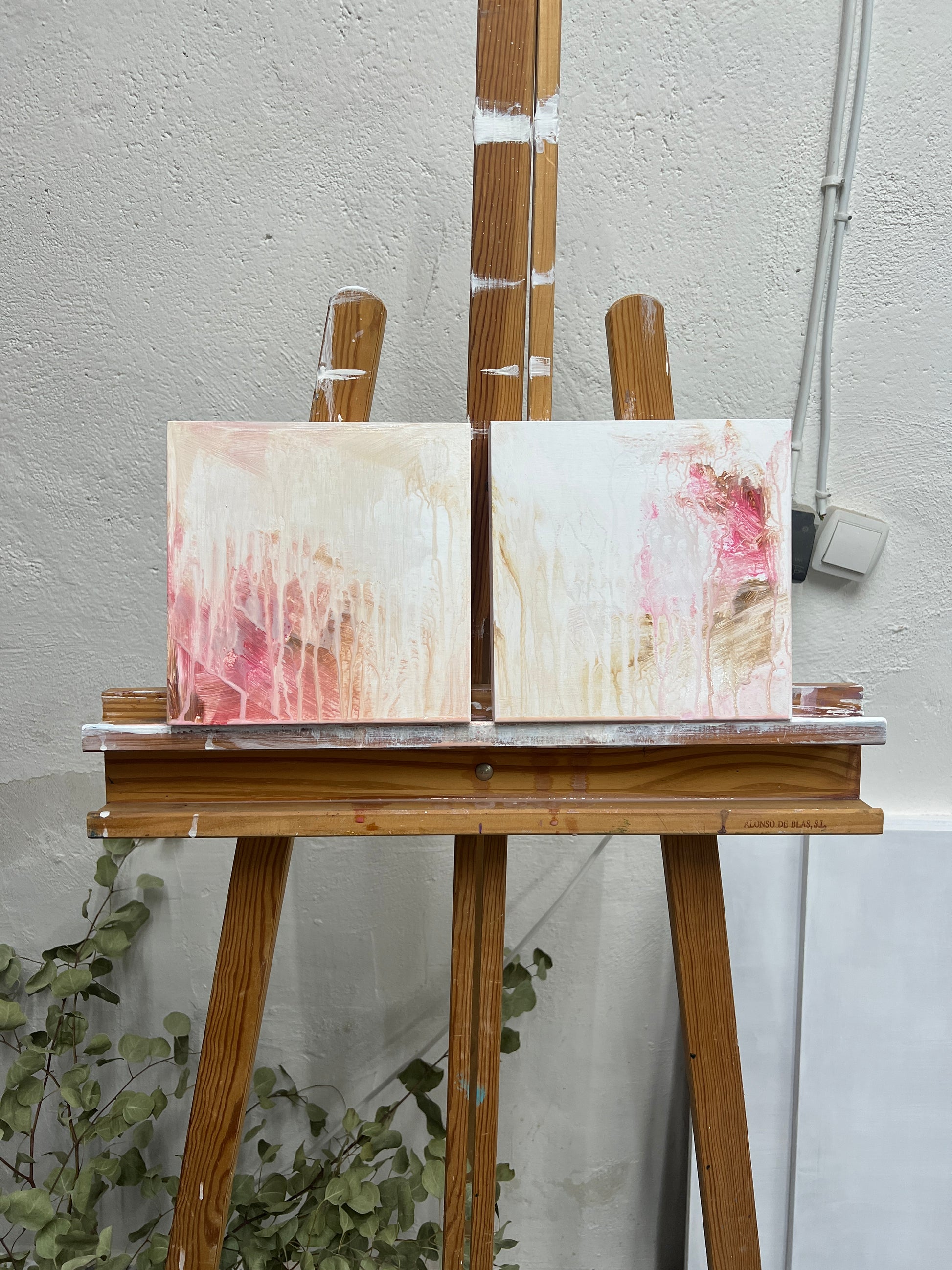 F268 acrílico sobre tabla 20x20cm (x2) es una creación compuesta por dos piezas de tamaño pequeño, que recrean una naturaleza abstracta, donde la flor y sus hojas casi diluidas asoman tímidamente. Su efecto lo conseguí parando junto a tiempo, dejando que la pintura siguiera su curso, borrando lo que ya había hecho. Como a veces nosotros borramos la naturaleza de nuestras vidas.